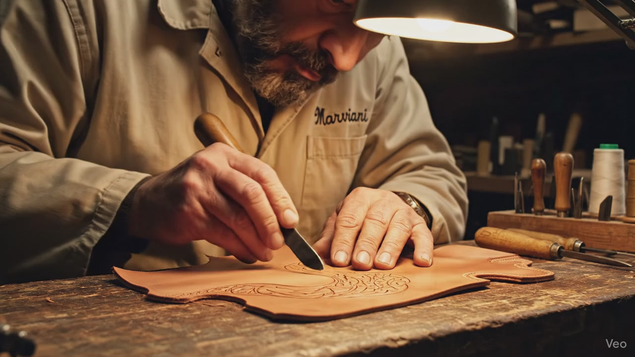 Erlebe, wie einer unserer Meisterhandwerker in Florenz jede Marviani-Tasche mit Präzision, Leidenschaft und jahrzehntelanger Erfahrung formt – echtes italienisches Kunsthandwerk in Aktion